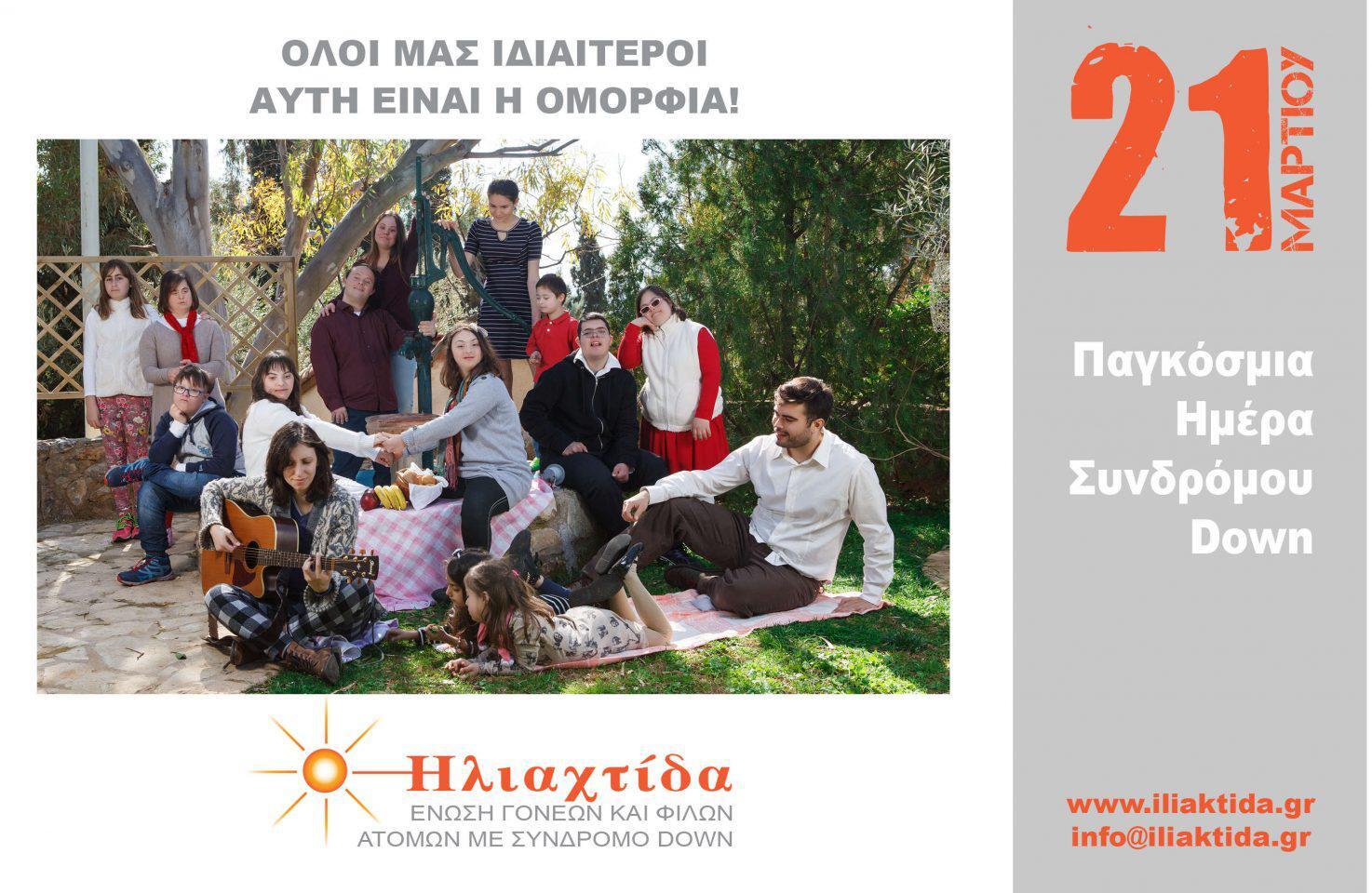 Το Σωματείο Ηλιαχτίδα- Ένωση Γονέων και Φίλων Ατόμων με Σύνδρομο Down- ιδρύθηκε το 1997 από μία ομάδα γονέων, επιστημόνων και φίλων ατόμων με σύνδρομο Down. Είναι Σωματείο μη κερδοσκοπικό που προσφέρει υπηρεσίες για την βελτίωση της ποιότητας της ζωής των ατόμων με σύνδρομο Down και αγωνίζεται για τη διεκδίκηση του ανθρώπινου δικαιώματός τους να θεωρούνται σεβαστά και ισότιμα μέλη της κοινωνίας.