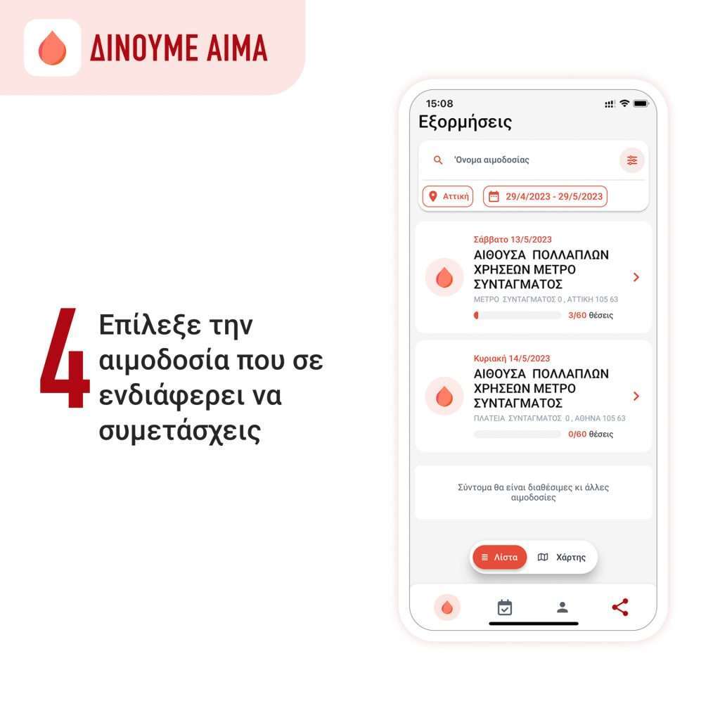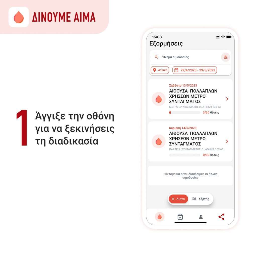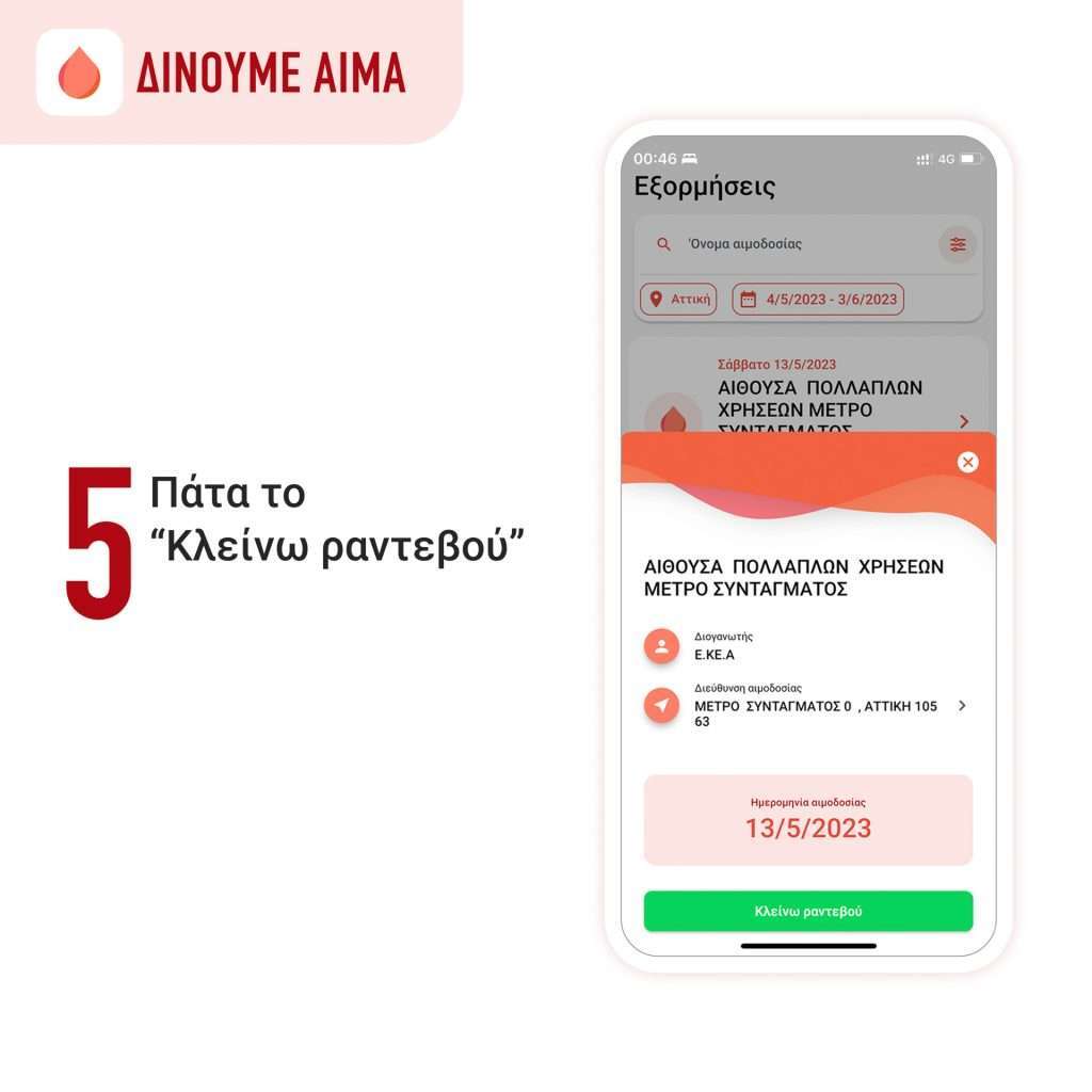 Η εθελοντική αιμοδοσία στη χώρα μας επιδέχεται βελτίωσης και το Εθνικό Κέντρο Αιμοδοσίας (ΕΚΕΑ) ανέπτυξε την εφαρμογή “Δίνουμε αίμα” η πιλοτική εφαρμογή της οποίας ξεκινά με αφορμή εθελοντική αιμοδοσία στο Σύνταγμα στις 13 και 14 Μαΐου.