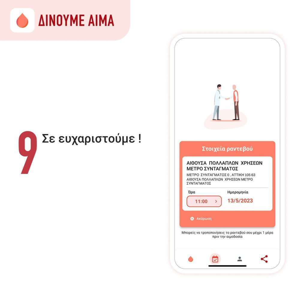 - Να μπορεί να τροποποιεί το προσδιορισμένο ραντεβού μέχρι μία ημέρα πριν την αιμοδοσία.