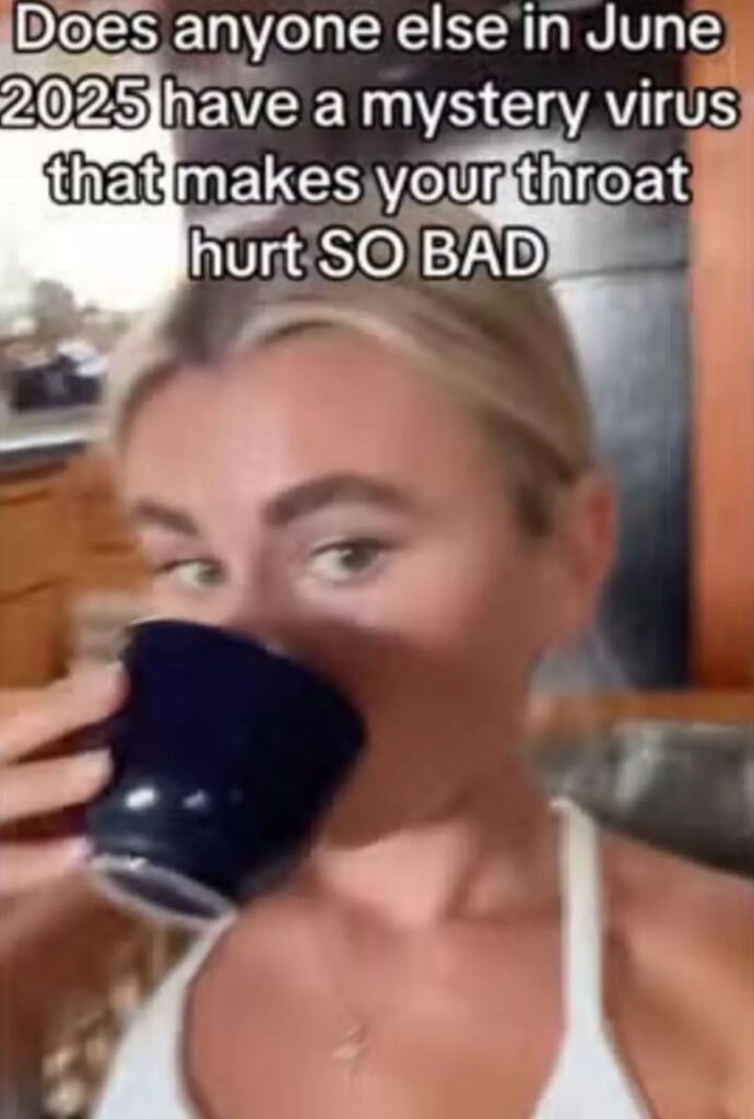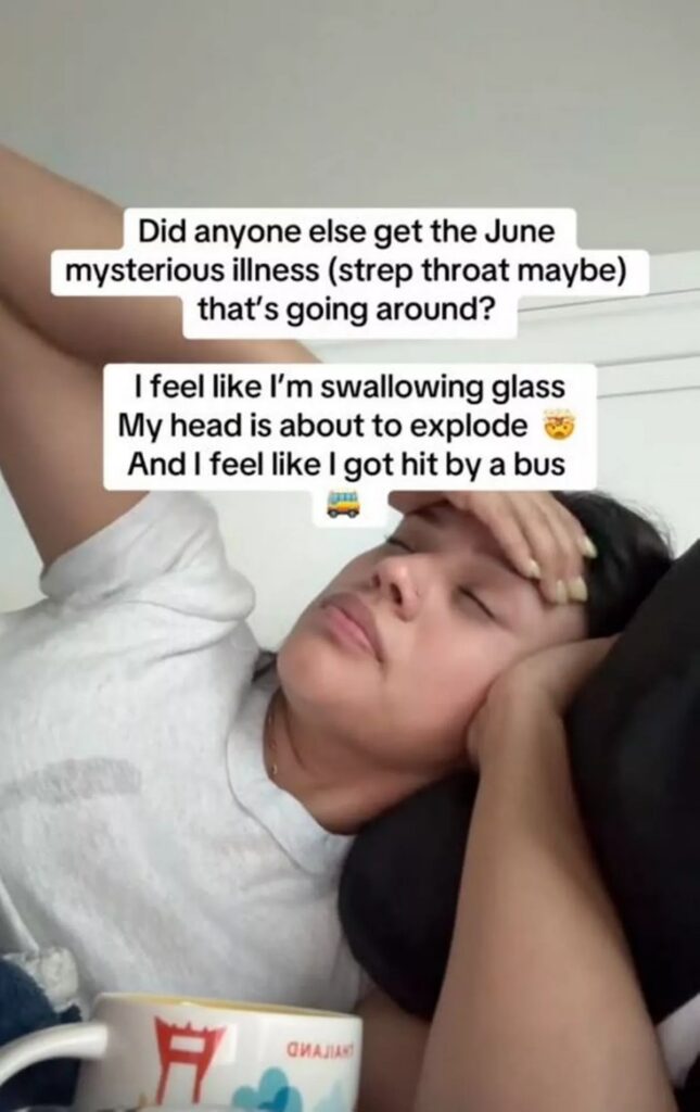 Πολλά βίντεο δείχνουν χρήστες του TikTok να υποφέρουν από περίεργα συμπτώματα, όπως πονόλαιμο, μυϊκούς πόνους και κόπωση. Οι χρήστες εκφράζουν διάφορα συμπτώματα, από πονόλαιμο μέχρι το «πονάει όταν καταπίνω», καθώς και μυϊκούς πόνους και κόπωση, και τον αποκαλούν «ιό του πονόλαιμου». Κάποιος είπε «πονάει πολύ» και παραδέχτηκε πως όταν έκανε τεστ για Covid, αυτό βγήκε αρνητικό.