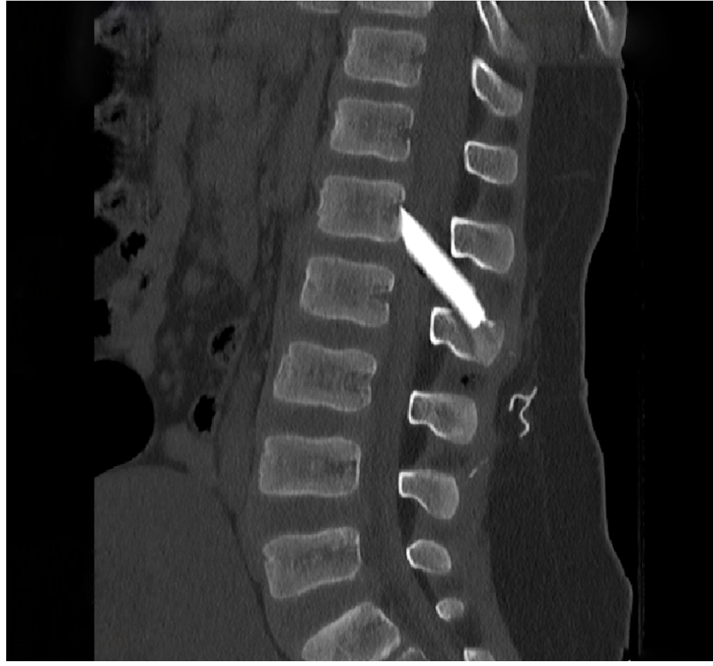 Οι μαγνητικές και αξονικές τομογραφίες πραγματοποιήθηκαν άμεσα, επιβεβαιώνοντας τις αρχικές υποψίες: δύο μεγάλα κομμάτια γυαλιού είχαν ενσφηνωθεί στη σπονδυλική στήλη, εισχωρώντας εντός του σπονδυλικού σωλήνα σχίζοντας την ιππουρίδα και την μήνιγγα που την περιβάλλει.