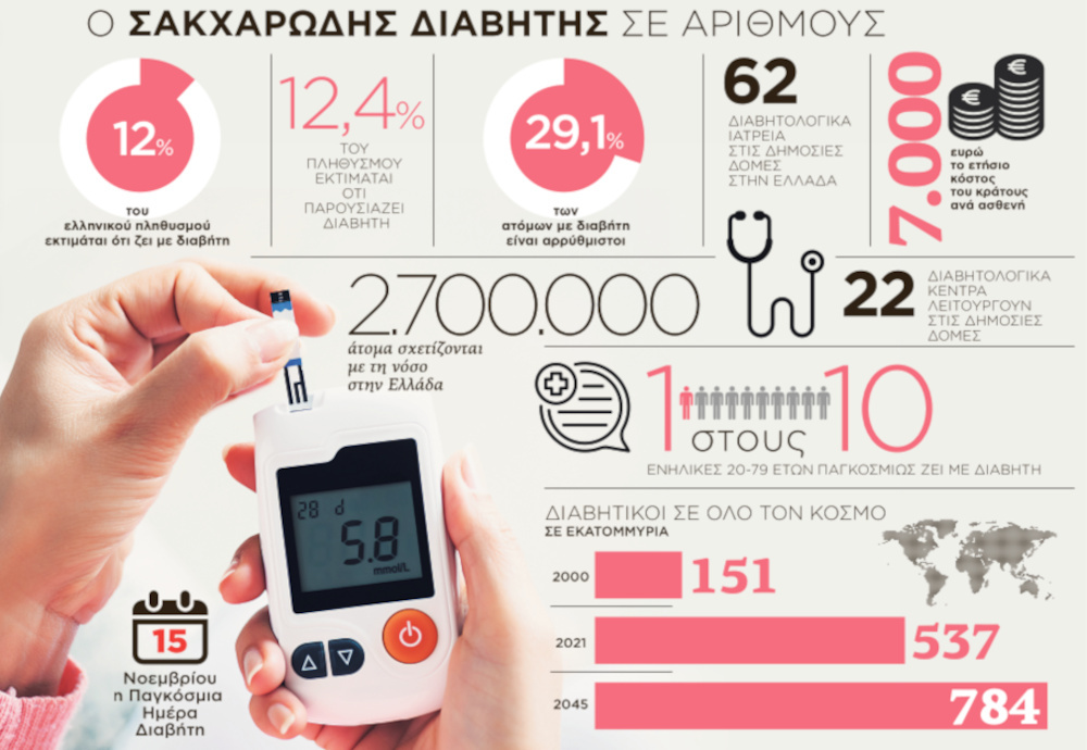 Επίσης, παγκοσμίως εκτιμάται ότι τα 537 εκατομμύρια ανθρώπων που ζουν με διαβήτη σήμερα, το 2045 θα ανέρχονται σε 784 εκατομμύρια.