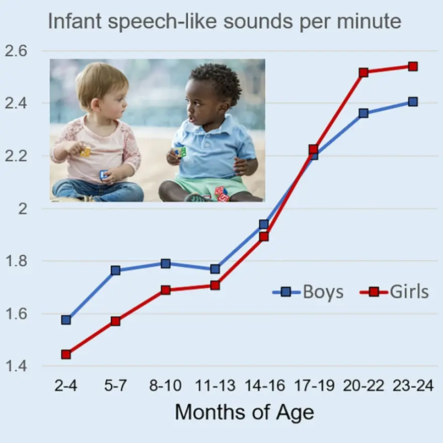 Οι ερευνητές, με επικεφαλής τον Κίμπροου Όλερ από το Πανεπιστήμιο του Μέμφις, διαπίστωσαν ότι τα αρσενικά βρέφη «μιλούν» περισσότερο από τα θηλυκά κατά τον πρώτο χρόνο, παρά την μακροχρόνια πεποίθηση ότι τα θηλυκά έχουν ένα πλεονέκτημα έναντι των αρσενικών στη γλώσσα.