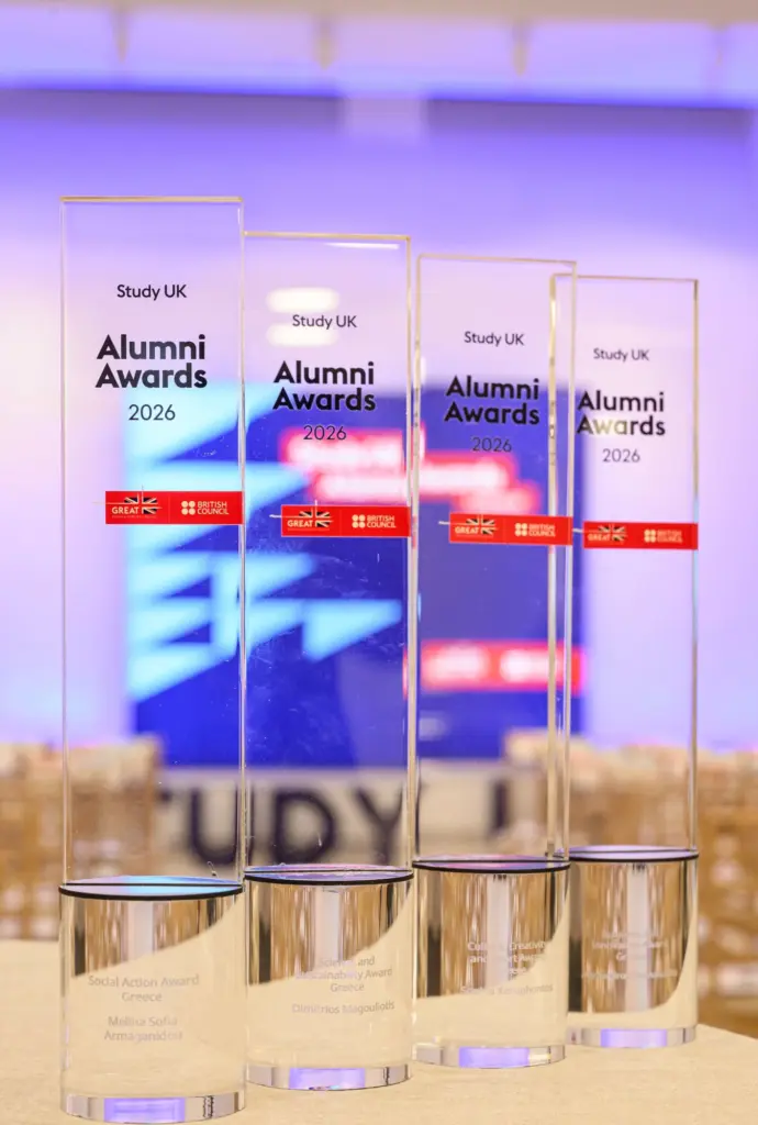 Σε μια λαμπρή τελετή στην Αθήνα, το British Council και η Βρετανική Πρεσβεία βράβευσαν τέσσερις νέους ηγέτες στο χώρο της επιστήμης, της επιχειρηματικότητας, του πολιτισμού και της κοινωνικής δράσης, οι οποίοι μετέτρεψαν τις γνώσεις τους σε έργο με πανελλαδικό και παγκόσμιο αντίκτυπο.